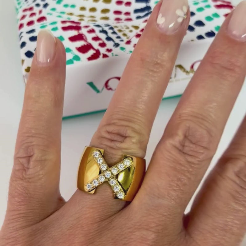 Anillo cruz de circonitas de 14mm de ancho aproximadamente✨ 💛